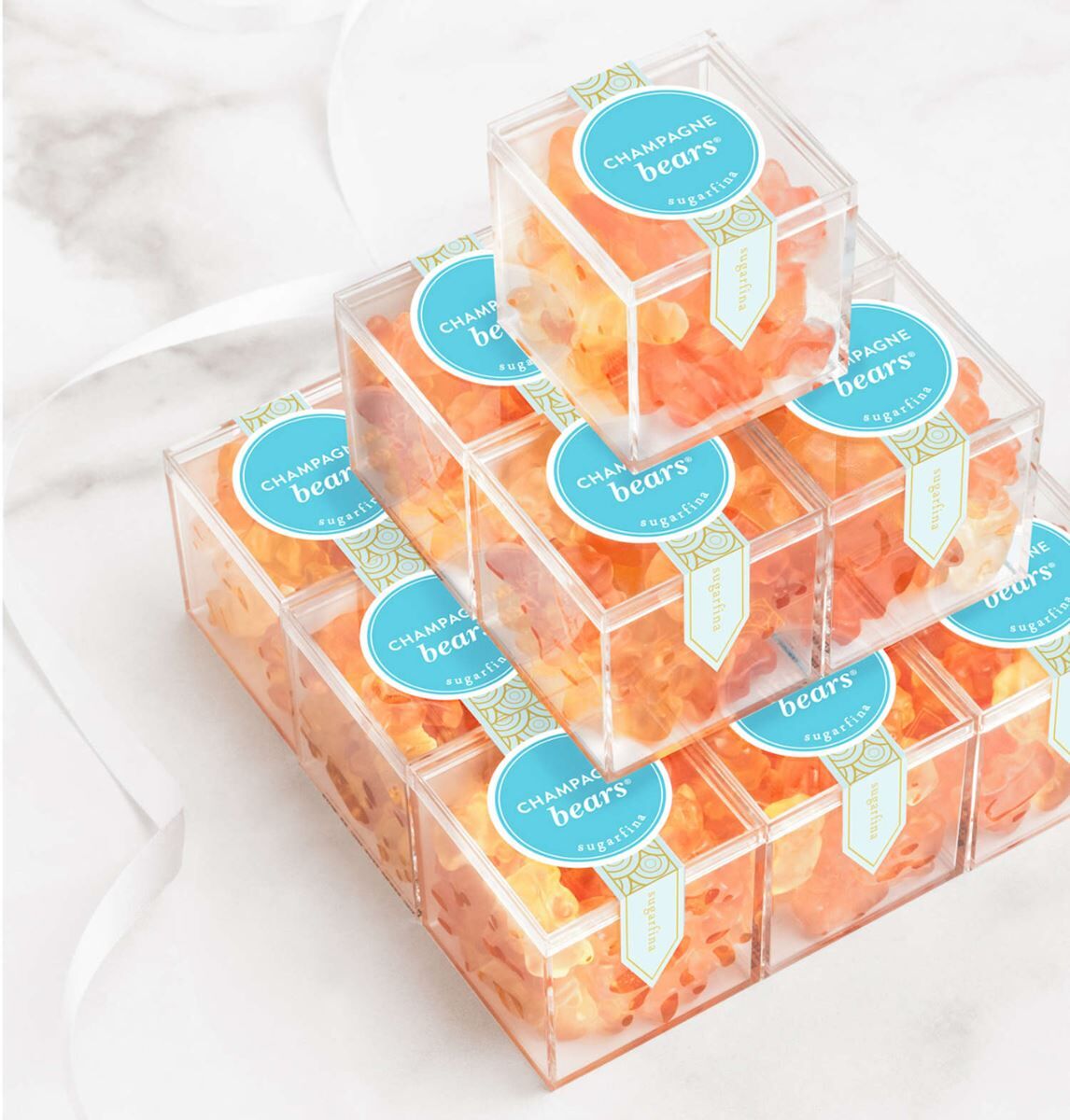 Open one drawer and you might land in Germany, home base for some of Sugarfina’s most famous gummies. Their iconic Champagne Bears — made with real Dom Pérignon Vintage Champagne — are imported from Germany and sparkle in brut and rosé. Peach Bellini hearts, also handcrafted in Germany, borrow their spirit from a Venetian cocktail but keep their precision from German candy engineering: juicy peach flavor, dusted in sweet-and-sour crystals, shaped into perfect little hearts.